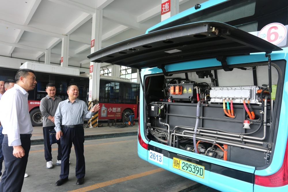▲市政府國(guó)資委副主任鄧興權(quán)(右一)到市公交集團(tuán)安全檢查